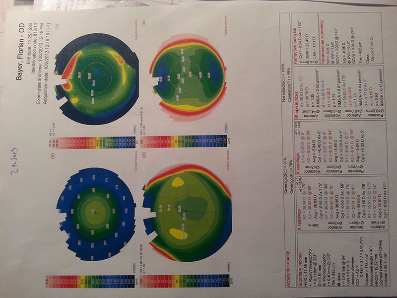 Ich weiß leider nicht, mit welchen optischen Zonen ich behandelt wurde oder wie groß meine Pupillen sind, aber ich lade euch hier mal meine Befunde hoch - vielleicht könnt ihr ja irgendwas rauslesen. Die beiden Pupillendarstellungen sind von Oktober 2013, der andere Befund von direkt nach der Op.